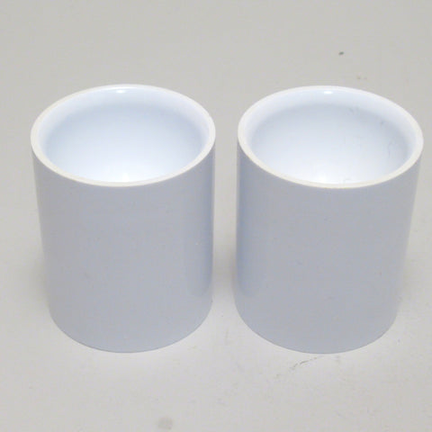 Paire de bougeoirs-coquetiers cylindrique blanc, d'un bout du cylindre sert de coquetier, l'autre bout à une finition cruciforme sert de bougeoir