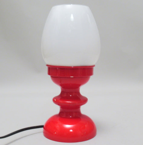 Petite lampe boule sur pied tulipe rouge Philippe Capelle Années 70