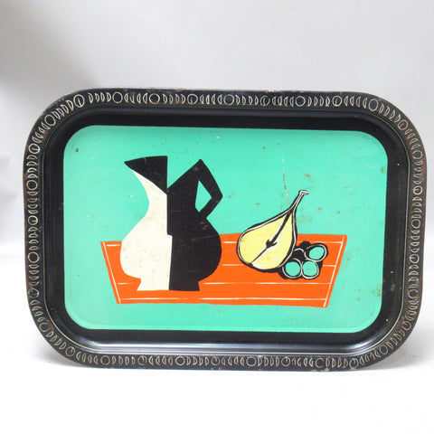 Plateau en métal à decor de Nature cubiste à la Picasso